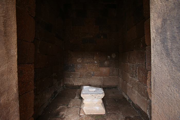 ภายในเรือนธาตุตรงกึ่งกลาง เรียกว่าห้องครรภคฤหะ เป็นที่ประดิษฐานรูปเคารพที่สำคัญที่สุด ในที่นี้คือ ศิวลึงค์ ซึ่งแทนองค์พระศิวะ เป็นที่น่าเสียดายว่า ประติมากรรมชิ้นนี้ได้สูญหายไป เหลือเพียงแต่ ท่อโสมสูตร คือร่องน้ำมนต์ที่ใช้รับน้ำสรงจากการสักการะศิวลึงค์เท่านั้น